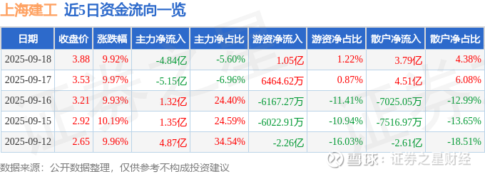 证券之星消息,上海建工9月18日涨停收盘,收盘价3.88元。该股于10点5分涨停,12次打开涨停,截止收盘封单资金为4535.5万元,占其流通市值0.13%。