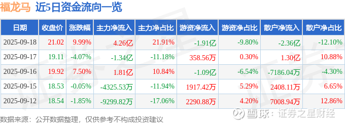 9月18日的资金流向数据方面,主力资金净流入4.26亿元,占总成交额21.91%,游资资金净流出1.91亿元,占总成交额9.8%,散户资金净流出2.36亿元,占总成交额12.1%。