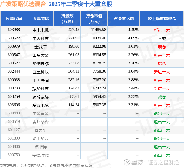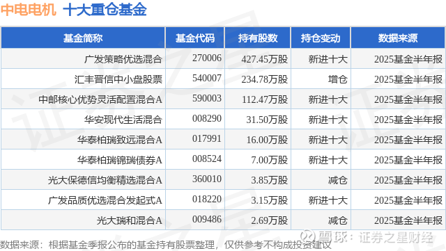 根据2025基金半年报公募基金重仓股数据,重仓该股的公募基金共9家,其中持有数量最多的公募基金为广发基金的广发策略优选混合。广发策略优选混合目前规模为25.55亿元,最新净值2.6742(9月17日),较上一交易日上涨1.48%,近一年上涨37.73%。该公募基金现任基金经理为罗洋。罗洋在任的基金产品包括:广发安宏回报混合A,管理时间为2022年6月7日至今,期间收益率为-17.49%;广发品质优选混合发起式A,管理时间为2024年6月27日至今,期间收益率为45.38%。