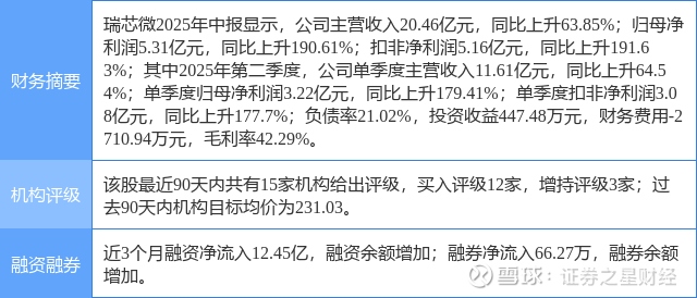2025年8月24日,民生证券研究员方竞,李少青发布了对瑞芯微的研报《2025年半年报点评:旗舰芯领航成长,全面拥抱AIoT 2.0浪潮》,该研报对瑞芯微给出“买入”评级。研报中预计2025-2027年归母净利润为11.98/15.53/19.97亿元,对应PE为69/53/41倍,考虑公司在机器视觉、汽车电子等市场产品持续放量,后续业绩增长具备持续性,维持“推荐”评级。证券之星数据中心根据近三年发布的研报数据计算,该研报作者对此股的盈利预测准确度为79.75%。