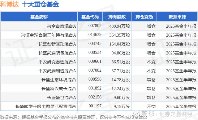 根据2025基金半年报公募基金重仓股数据,重仓该股的公募基金共14家,其中持有数量最多的公募基金为兴证全球基金的兴全合泰混合A。兴全合泰混合A目前规模为44.93亿元,最新净值1.6682(9月17日),较上一交易日上涨3.25%,近一年上涨62.34%。该公募基金现任基金经理为任相栋。任相栋在任的基金产品包括:兴证全球合衡三年持有混合A,管理时间为2022年1月13日至今,期间收益率为-2.12%。