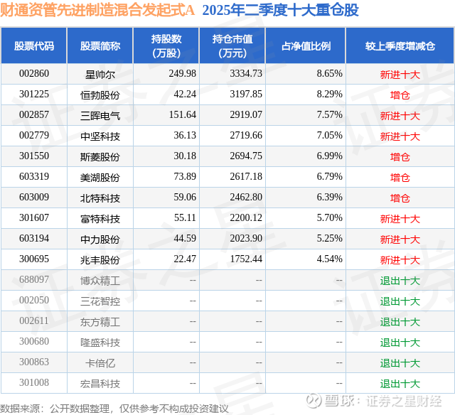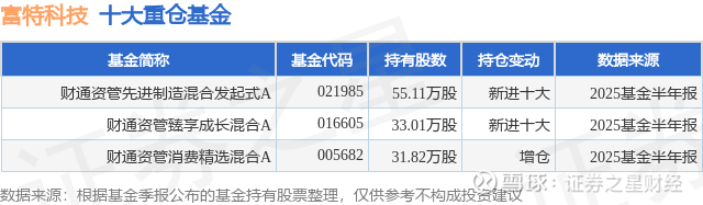 根据2025基金半年报公募基金重仓股数据,重仓该股的公募基金共3家,其中持有数量最多的公募基金为财通资管的财通资管先进制造混合发起式A。财通资管先进制造混合发起式A目前规模为0.41亿元,最新净值1.9828(9月17日),较上一交易日上涨3.88%。该公募基金现任基金经理为徐竞择。