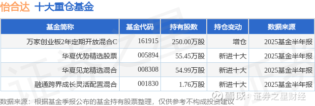 根据2025基金半年报公募基金重仓股数据,重仓该股的公募基金共4家,其中持有数量最多的公募基金为万家基金的万家创业板2年定期开放混合C。万家创业板2年定期开放混合C目前规模为0.95亿元,最新净值0.7873(9月17日),较上一交易日上涨0.63%,近一年上涨69.86%。该公募基金现任基金经理为黄兴亮。黄兴亮在任的基金产品包括:万家行业优选混合(LOF),管理时间为2019年3月2日至今,期间收益率为166.61%;万家经济新动能混合A,管理时间为2019年10月30日至今,期间收益率为93.94%;万家自主创新混合A,管理时间为2020年2月10日至今,期间收益率为22.66%;