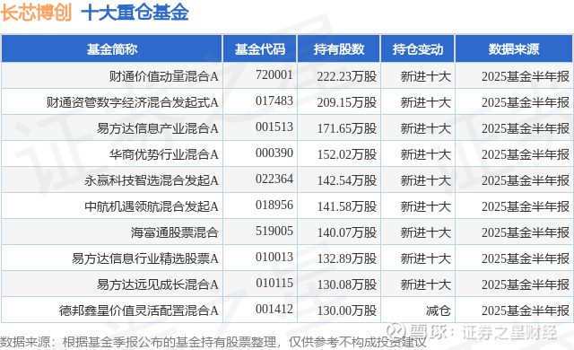 根据2025基金半年报公募基金重仓股数据,重仓该股的公募基金共83家,其中持有数量最多的公募基金为财通基金的财通价值动量混合A。财通价值动量混合A目前规模为19.87亿元,最新净值7.12(9月17日),较上一交易日上涨0.3%,近一年上涨131.62%。该公募基金现任基金经理为金梓才。金梓才在任的基金产品包括:财通成长优选混合A,管理时间为2015年6月29日至今,期间收益率为247.2%;财通多策略福鑫定开混合,管理时间为2018年5月21日至今,期间收益率为312.73%;财通集成电路产业股票A,管理时间为2018年11月29日至今,期间收益率为248.27%。