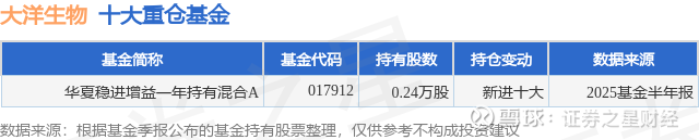 根据2025基金半年报公募基金重仓股数据,重仓该股的公募基金共1家,其中持有数量最多的公募基金为华夏基金的华夏稳进增益一年持有混合A。华夏稳进增益一年持有混合A目前规模为0.29亿元,最新净值1.0771(9月17日),较上一交易日上涨0.15%,近一年上涨5.13%。该公募基金现任基金经理为宋洋。宋洋在任的基金产品包括:华夏沪深300指数增强A,管理时间为2016年11月18日至今,期间收益率为75.23%;华夏泰兴混合A,管理时间为2017年8月29日至今,期间收益率为49.65%;华夏睿磐泰茂混合A,管理时间为2018年4月10日至今,期间收益率为45.17%;华夏睿磐泰荣混合A,管理时间为2018年4月10日至今,期间收益率为51.55%。