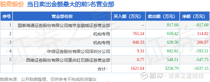 从龙虎榜公布的当日买卖数据来看,机构合计净买入321.79万元。炒股养家等知名游资榜上有名。(知名游资炒股养家一般指华鑫证券有限责任公司上海宛平南路证券营业部席位,根据市场资料整理,仅供参考)