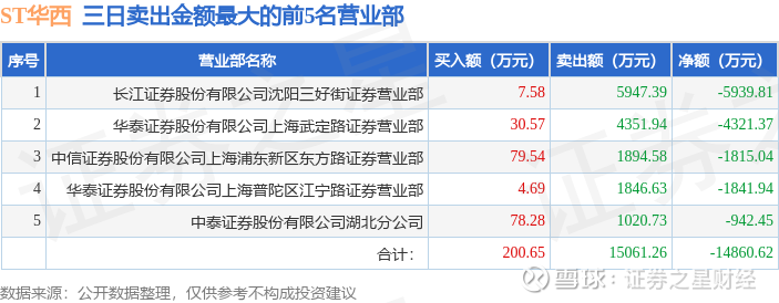 证券之星消息,沪深交易所2025年9月18日公布的交易公开信息显示,ST华西(002630)因连续三个交易日内,跌幅偏离值累计达到12%的ST证券、*ST证券和未完成股改证券登上龙虎榜。此次是近5个交易日内第1次上榜。