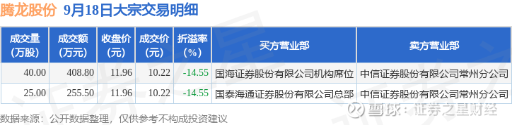 证券之星消息,9月18日腾龙股份发生大宗交易,交易数据如下: