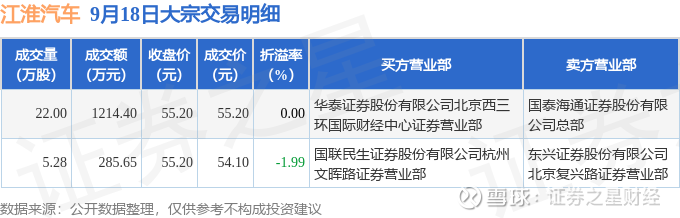 证券之星消息,9月18日江淮汽车发生大宗交易,交易数据如下:
