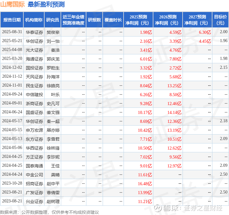 以下是详细的盈利预测信息:
