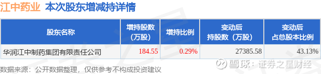 证券之星消息,9月18日江中药业发布公告《江中药业:江中药业关于控股股东及其一致行动人权益变动触及1%刻度的提示性公告》,其股东华润江中制药集团有限责任公司于2025年7月1日至2025年9月17日间合计增持184.55万股,占公司目前总股本的0.2906%,变动期间该股股价上涨0.32%,截止9月17日收盘报21.9元。