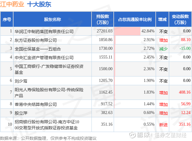 根据江中药业2025年中报公布的十大股东详情如下: