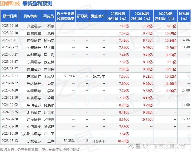以下是详细的盈利预测信息: