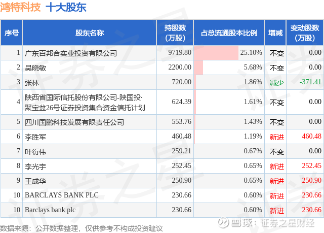 根据鸿特科技2025年中报公布的十大股东详情如下: