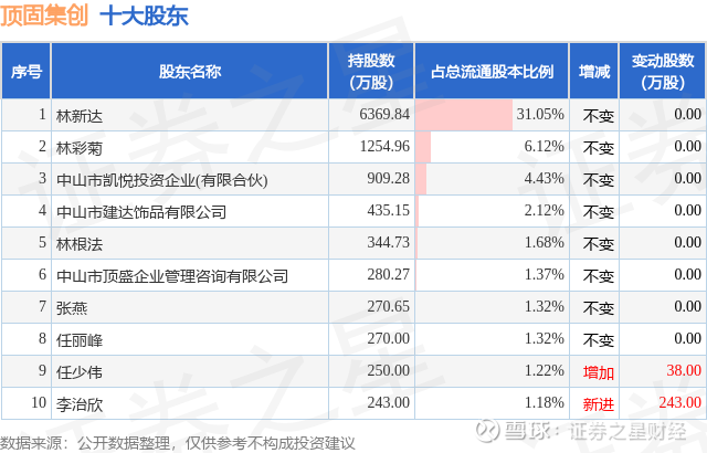 根据顶固集创2025年中报公布的十大股东详情如下: