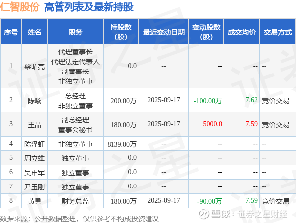 仁智股份近半年内的董监高及核心技术人员增减持详情如下: