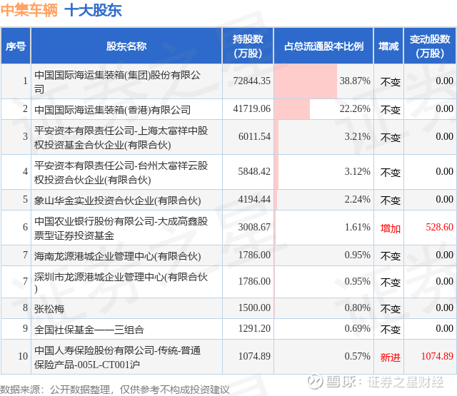 根据中集车辆2025年中报公布的十大股东详情如下: