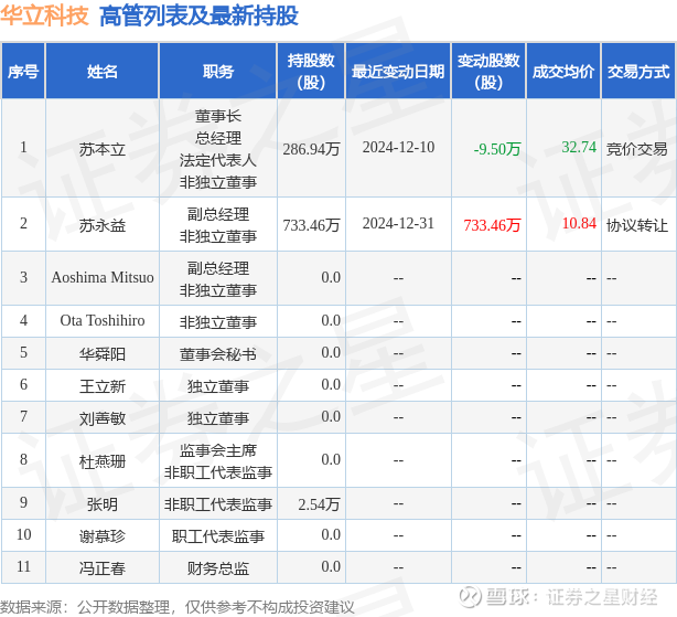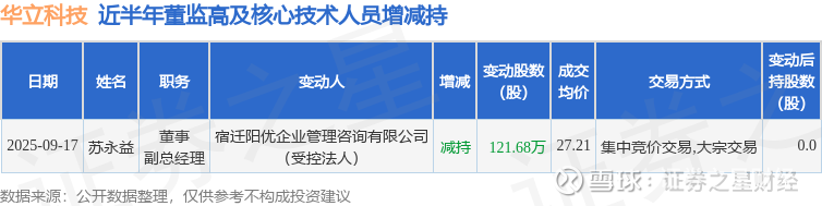 华立科技近半年内的董监高及核心技术人员增减持详情如下: