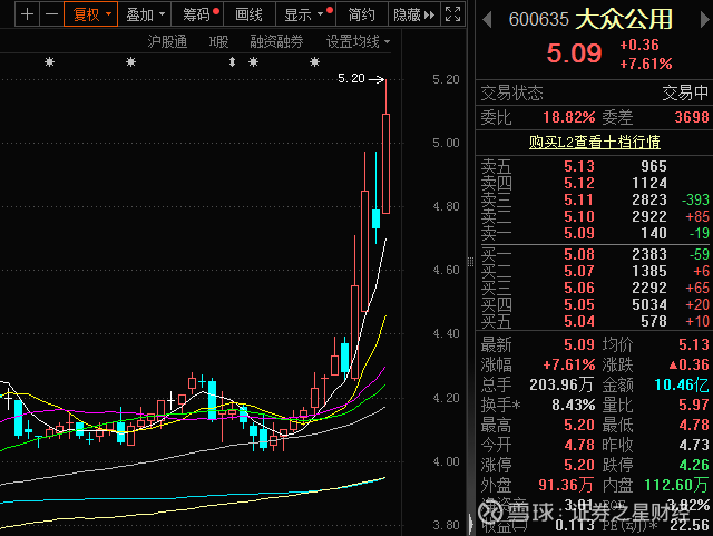 9月19日,大众公用(600635)股价表现强势,盘中一度实现涨停。