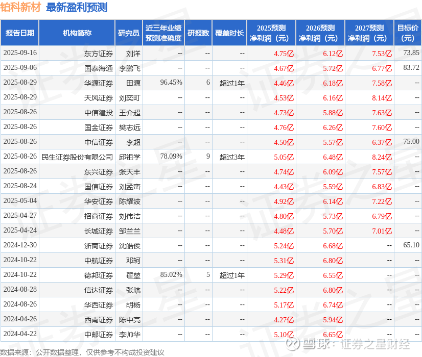 证券之星数据中心根据近三年发布的研报数据计算,华源证券田源研究员团队对该股研究较为深入,近三年预测准确度均值高达96.45%,其预测2025年度归属净利润为盈利4.46亿,根据现价换算的预测PE为49.61。