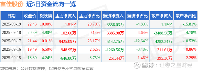 证券之星消息,富佳股份9月19日涨停收盘,收盘价22.43元。该股于11点21分涨停,1次打开涨停,截止收盘封单资金为159.61万元,占其流通市值0.01%。