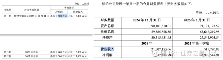 同时,本次交易设置业绩考核条款,考核周期为2025年至2027年,要求标的公司营收分别不低于 5000万元、6000万元、7000万元;净利润则不低于500万元、600万元、700万元。