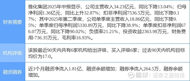 2025年8月22日,开源证券研究员金益腾,蒋跨跃,李思佳发布了对雅化集团的研报《公司信息更新报告:Q2锂价下行拖累公司业绩,看好公司长期成长》,该研报对雅化集团给出“买入”评级。研报中预计公司2025-2027年归母净利润分别为5.80(-2.23)、8.70(-2.68)、12.02(-4.07)亿元,EPS分别为0.50(-0.20)、0.75(-0.24)、1.04(-0.36)元,当前股价对应2025-2027年PE为27.8、18.5、13.4倍。我们看好公司作为国内民爆和锂行业领军企业之一,未来随锂盐价格回暖、锂精矿自给率提升、民爆海外市场持续开拓等,业绩存在较大向上弹性,维持“买入”评级。证券之星数据中心根据近三年发布的研报数据计算,该研报作者对此股的盈利预测准确度为65.41%。