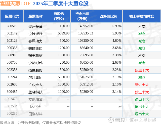 根据2025基金半年报公募基金重仓股数据,重仓该股的公募基金共58家,其中持有数量最多的公募基金为富国基金的富国天惠LOF。富国天惠LOF目前规模为220.55亿元,最新净值2.8119(9月18日),较上一交易日下跌1.22%,近一年上涨34.67%。该公募基金现任基金经理为朱少醒。