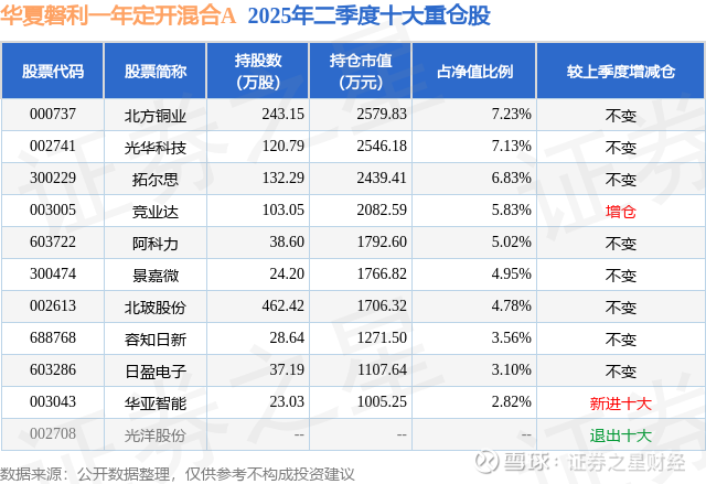 根据2025基金半年报公募基金重仓股数据,重仓该股的公募基金共3家,其中持有数量最多的公募基金为华夏基金的华夏磐利一年定开混合A。华夏磐利一年定开混合A目前规模为3.34亿元,最新净值1.8772(9月18日),较上一交易日下跌1.08%,近一年上涨90.54%。该公募基金现任基金经理为张城源。张城源在任的基金产品包括:华夏磐泰混合(LOF)A,管理时间为2016年12月26日至今,期间收益率为78.85%;华夏磐锐一年定开混合A,管理时间为2020年12月22日至今,期间收益率为79.23%;华夏磐益一年定开混合,管理时间为2021年1月26日至今,期间收益率为53.7%。