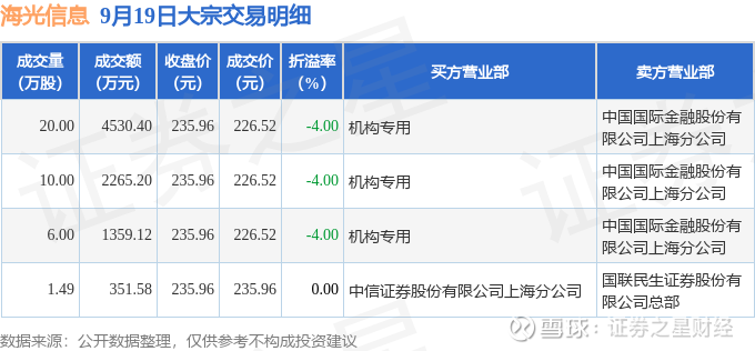 证券之星消息,9月19日海光信息发生大宗交易,交易数据如下: