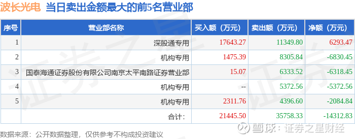 从龙虎榜公布的当日买卖数据来看,机构合计净卖出1.31亿元,北向资金合计净买入6293.47万元。章盟主、作手新一等知名游资榜上有名。(知名游资章盟主一般指国泰海通证券股份有限公司上海长宁区江苏路证券营业部席位、知名游资作手新一一般指国泰海通证券股份有限公司南京太平南路证券营业部席位,根据市场资料整理,仅供参考)