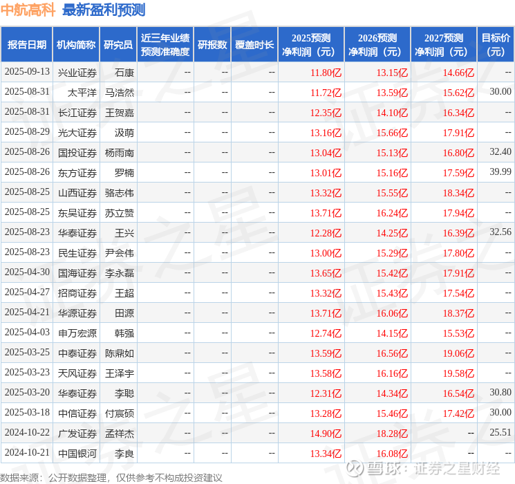 以下是详细的盈利预测信息: