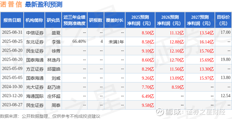 证券之星数据中心根据近三年发布的研报数据计算,东北证券李强研究员团队对该股研究较为深入,近三年预测准确度均值为66.4%,其预测2025年度归属净利润为盈利8.58亿,根据现价换算的预测PE为15.69。