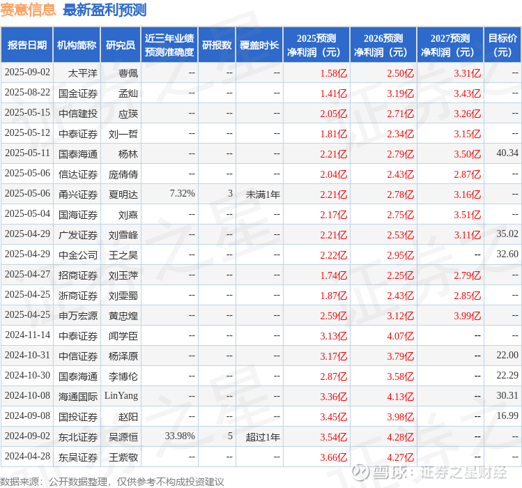 以下是详细的盈利预测信息: