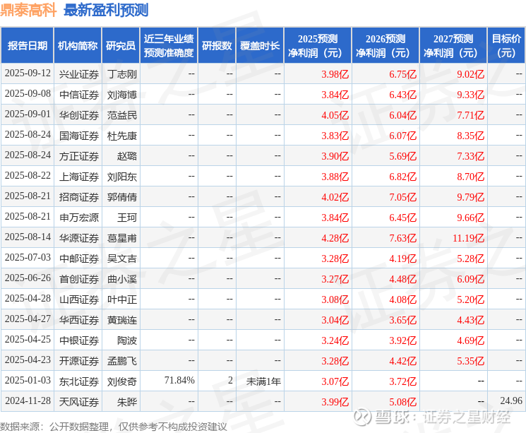 鼎泰高科2025年中报显示,公司主营收入9.04亿元,同比上升26.9%;归母净利润1.6亿元,同比上升79.78%;扣非净利润1.48亿元,同比上升96.46%;其中2025年第二季度,公司单季度主营收入4.81亿元,同比上升26.64%;单季度归母净利润8716.8万元,同比上升80.86%;单季度扣非净利润8142.9万元,同比上升104.19%;负债率33.49%,投资收益282.81万元,财务费用331.36万元,毛利率39.24%。