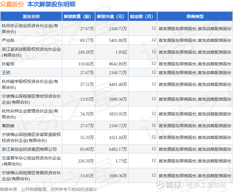 本次解禁涉及股东明细见下表: