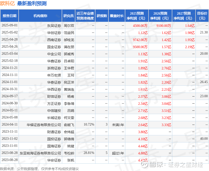 以下是详细的盈利预测信息: