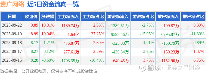 证券之星消息,贵广网络9月22日涨停收盘,收盘价9.89元。该股于9点35分涨停,未打开涨停,截止收盘封单资金为2.52亿元,占其流通市值2.04%。
