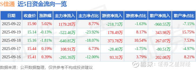 证券之星消息,S佳通9月22日涨停收盘,收盘价15.9元。该股于9点36分涨停,7次打开涨停,截止收盘封单资金为3.02万元,占其流通市值0.0%。