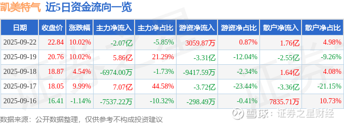 9月22日的资金流向数据方面,主力资金净流出2.07亿元,占总成交额5.85%,游资资金净流入3059.87万元,占总成交额0.87%,散户资金净流入1.76亿元,占总成交额4.98%。