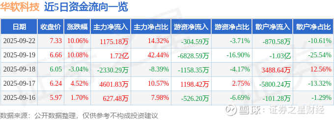 证券之星消息,华软科技9月22日涨停收盘,收盘价7.33元。该股于9点25分涨停,未打开涨停,截止收盘封单资金为1.69亿元,占其流通市值3.77%。