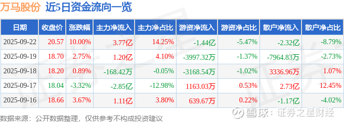 证券之星消息,万马股份9月22日涨停收盘,收盘价20.57元。该股于10点24分涨停,未打开涨停,截止收盘封单资金为1.89亿元,占其流通市值0.91%。
