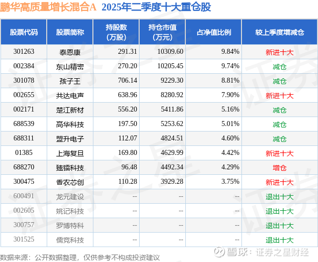 根据2025基金半年报公募基金重仓股数据,重仓该股的公募基金共25家,其中持有数量最多的公募基金为鹏华基金的鹏华高质量增长混合A。鹏华高质量增长混合A目前规模为10.17亿元,最新净值1.0776(9月19日),较上一交易日上涨0.04%,近一年上涨115.52%。该公募基金现任基金经理为胡颖。胡颖在任的基金产品包括:鹏华稳健回报混合A,管理时间为2021年11月16日至今,期间收益率为37.63%;
