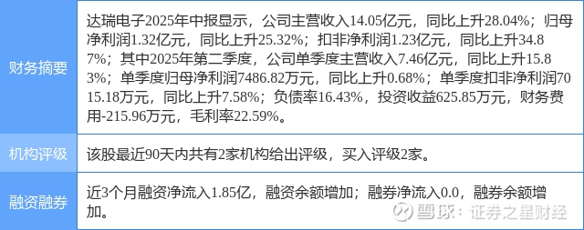 2025年8月19日,太平洋研究员张世杰,罗平发布了对达瑞电子的研报《业绩符合预期,发展韧性强劲》,该研报对达瑞电子给出“买入”评级。研报中预计公司2025-2027年实现营收35.99、46.53、55.73亿元,实现归母净利润3.22、4.14、5.04亿元,对应PE26.17、20.37、16.73x,维持公司“买入”评级。证券之星数据中心根据近三年发布的研报数据计算,该研报作者对此股的盈利预测准确度为73.13%。