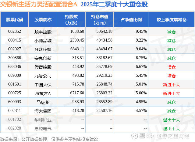 根据2025基金半年报公募基金重仓股数据,重仓该股的公募基金共62家,其中持有数量最多的公募基金为交银施罗德基金的交银新生活力灵活配置混合A。交银新生活力灵活配置混合A目前规模为53.62亿元,最新净值2.449(9月19日),较上一交易日上涨0.8%,近一年上涨35.3%。该公募基金现任基金经理为杨浩。
