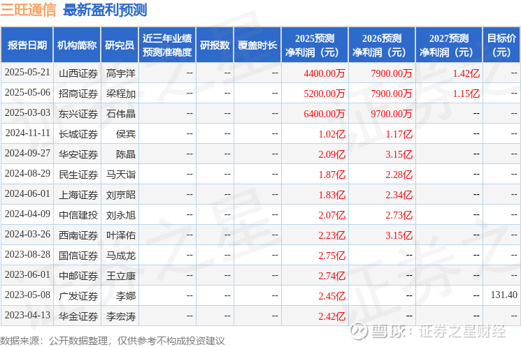 山西证券股份有限公司张天,赵天宇近期对三旺通信进行研究并发布了研究报告《整体经营情况企稳,期待新领域催化》,给予三旺通信增持评级。