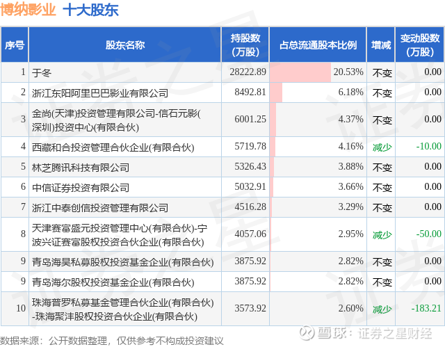 根据博纳影业2025年中报公布的十大股东详情如下:
