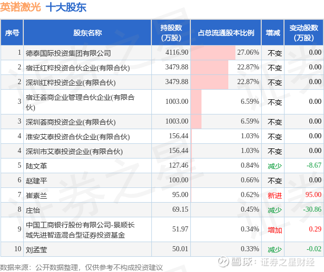 根据英诺激光2025年中报公布的十大股东详情如下: