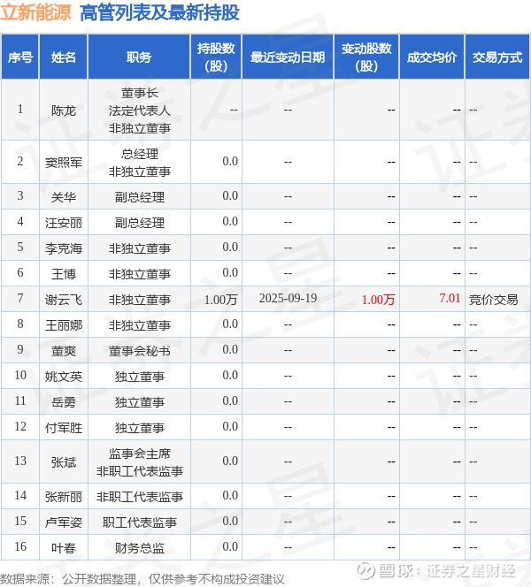 立新能源近半年内的董监高及核心技术人员增减持详情如下: