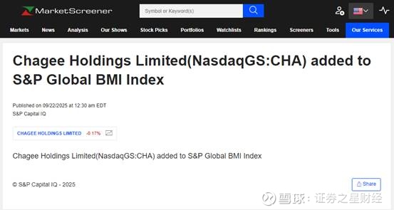 9月22日,据Marketscreener消息,茶姬控股(NASDAQ:CHA)(霸王茶姬控股公司)被收录进入标普全球广义市场指数。